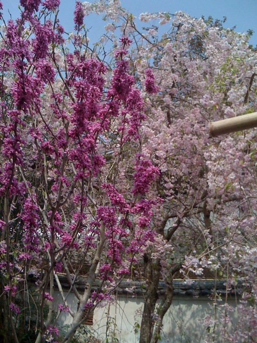 桜はほとんど終わってたけど、そん中でも残ってた枝垂と、名古屋でも今が旬のハナズオウのコントラスト。