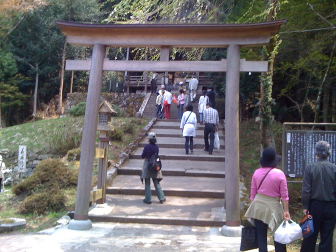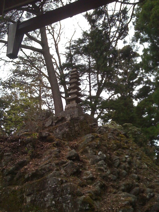 急勾配をヒーヒーで30分くらい登ったところで、「子守り」がゆかりらしい水分神社へ着。