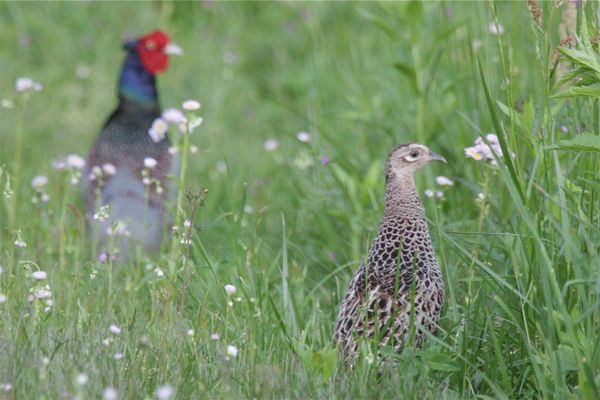 んで今日、生まれて初めて野生の「つがいキジ」に遭遇。