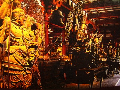 心柱(大日如来)を囲む金剛界四仏と八大菩薩!その周りの柱には剥がれていたけど金剛界諸尊、扉には八方天。さらに壁には龍猛から龍智・善無畏・一行・金剛智・不空・恵果・弘法大師の密教八祖が描かれてたり。つまり塔自体が金剛界曼荼羅になってる。もうこの辺で僕は瞳孔ひらいちまってたと思う。目がチカチカして大変だったもんな。