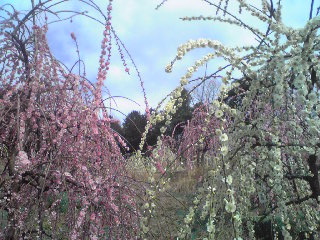 ピンクと白の枝垂れ梅が乱れ咲き。まだ若い樹が多かったから、あと何年かしたらすごいことになるんだろうな。既にキレイだったけど。