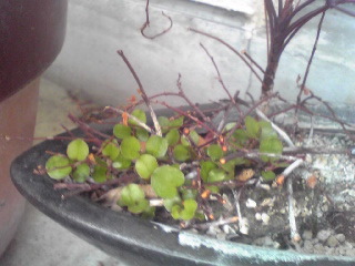 秋に植え替えてから調子悪くて、もう枯れちゃったかと思ってたら出てきた!母から株分けしてもらった20年もの。持ってきた時は結構ボリュームあったもんな。常緑多年草なのに、完全リセットした感じ。この家の環境に馴染もうとしている訳だ。