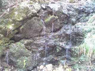 こんな見所も。岩のあちこちの隙間から糸のように落ちる水。鳥が水浴びしてた。汗だくだったから、僕も水浴びしたかったな。