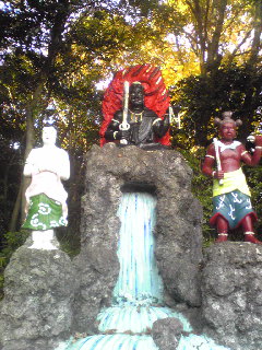 お不動さん。滝の上に座っておられる。左右はどなたでしょう。