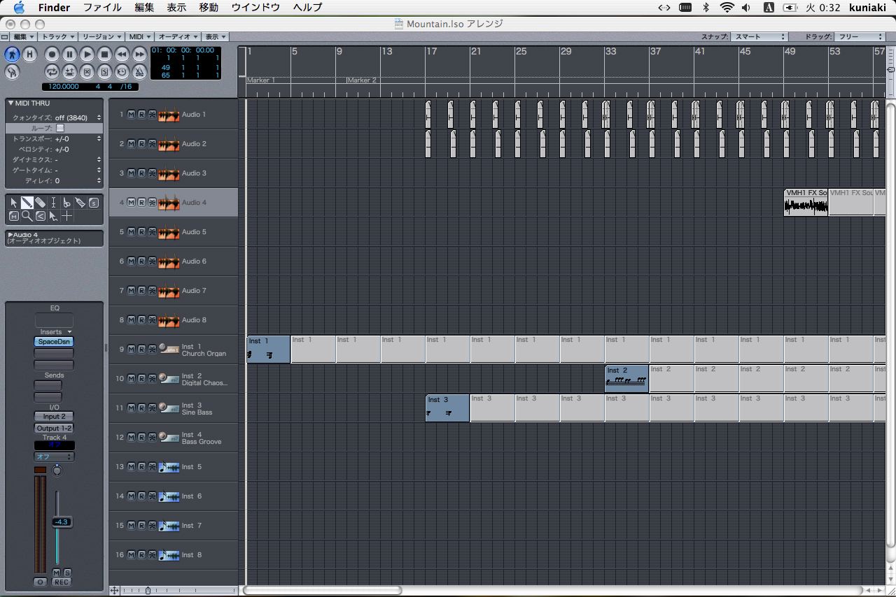 久しぶりに触ったんだけど、不思議と上達してんだよな。忘れてる事もあると思うんだけど、前にできんかった事ができるようになってたりする。これって、コンピュータのアプリケーションの面白いところというか、他のアプリケーションで覚えたスキルが応用できるんだ。それと、音に物凄く敏感になってる。多分、瞑想したり植物と会話ばっかしてるからだ。だからいい曲ができるとまでは言えないけどね。