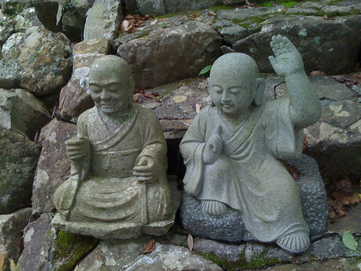 やっぱり山の中の寺はいぃ。老木に囲まれた境内には、そこかしこに五百羅漢像。写真向かって右の羅漢は、よく見るとadidasスーパースターを履いて「うぃーす」。うぅん、フランクだ。