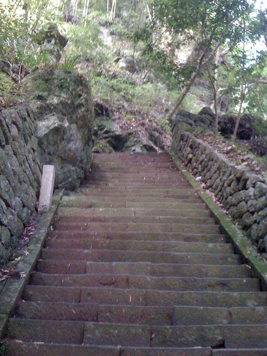 険しい参道を登りきった達成感は、何ものにも代え難いのだっ!汗で全身グッショリです。でも実は、この辺りまで車で来れるらしい。
